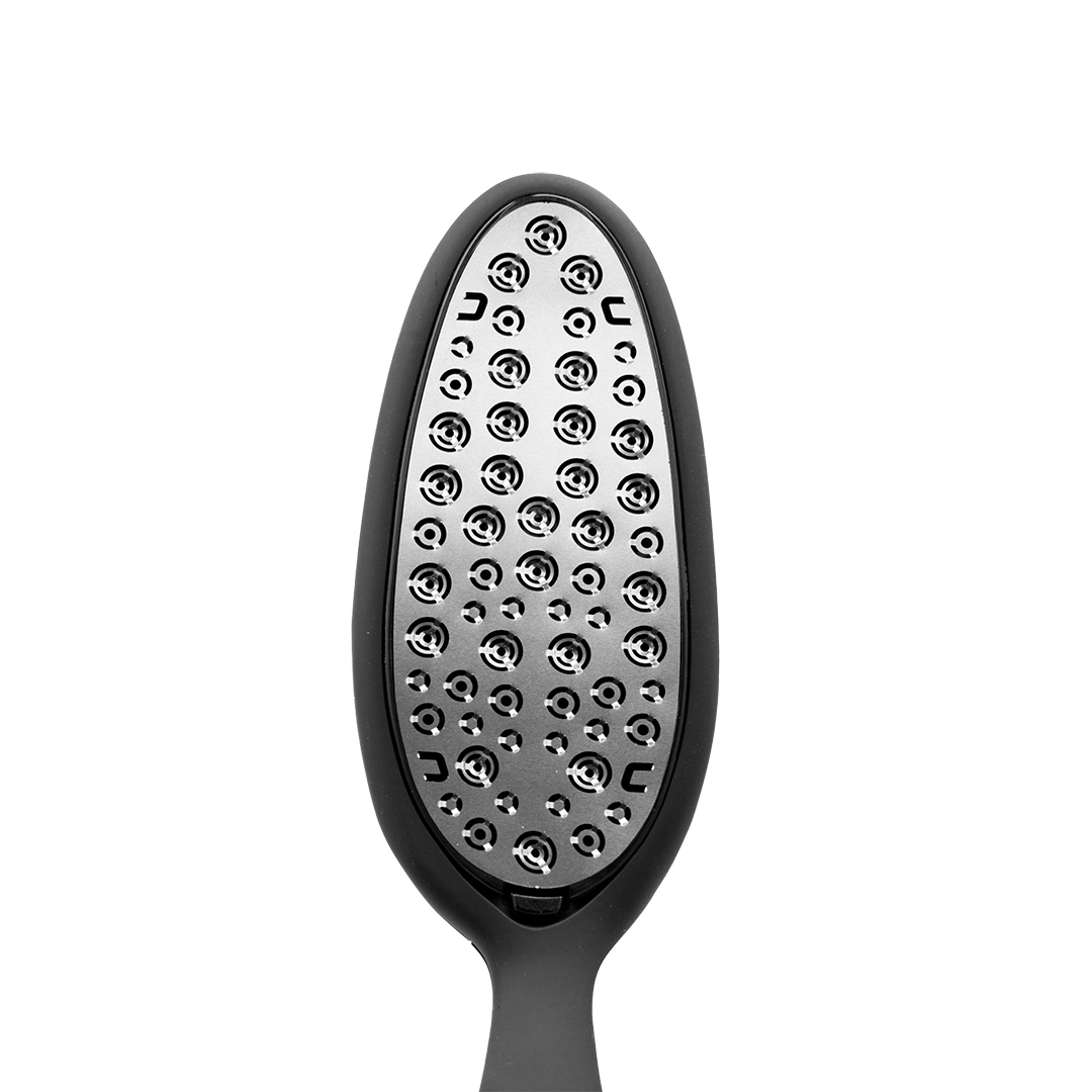 A comfortable and light soft touch handle, along with its unique concave high-quality stainless steel inlay, this file only removes rough skin, ensuring that healthy skin is not damaged.